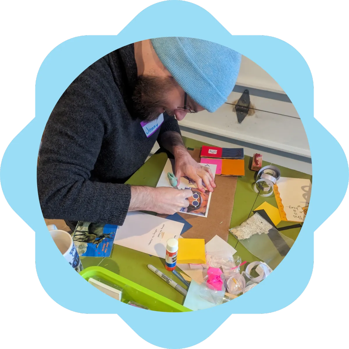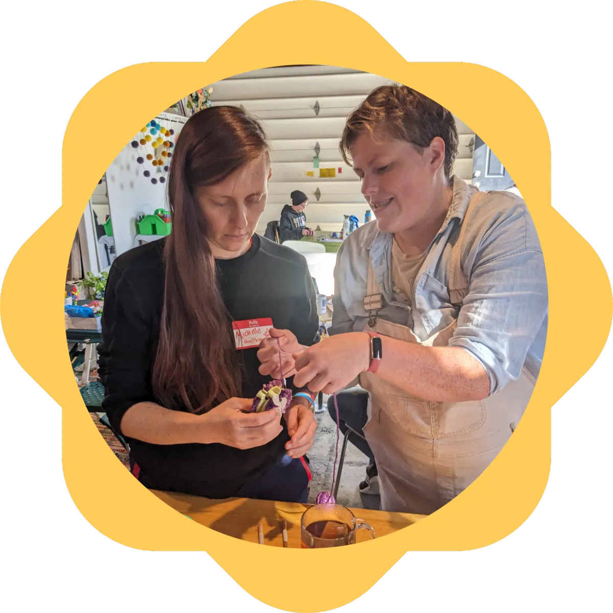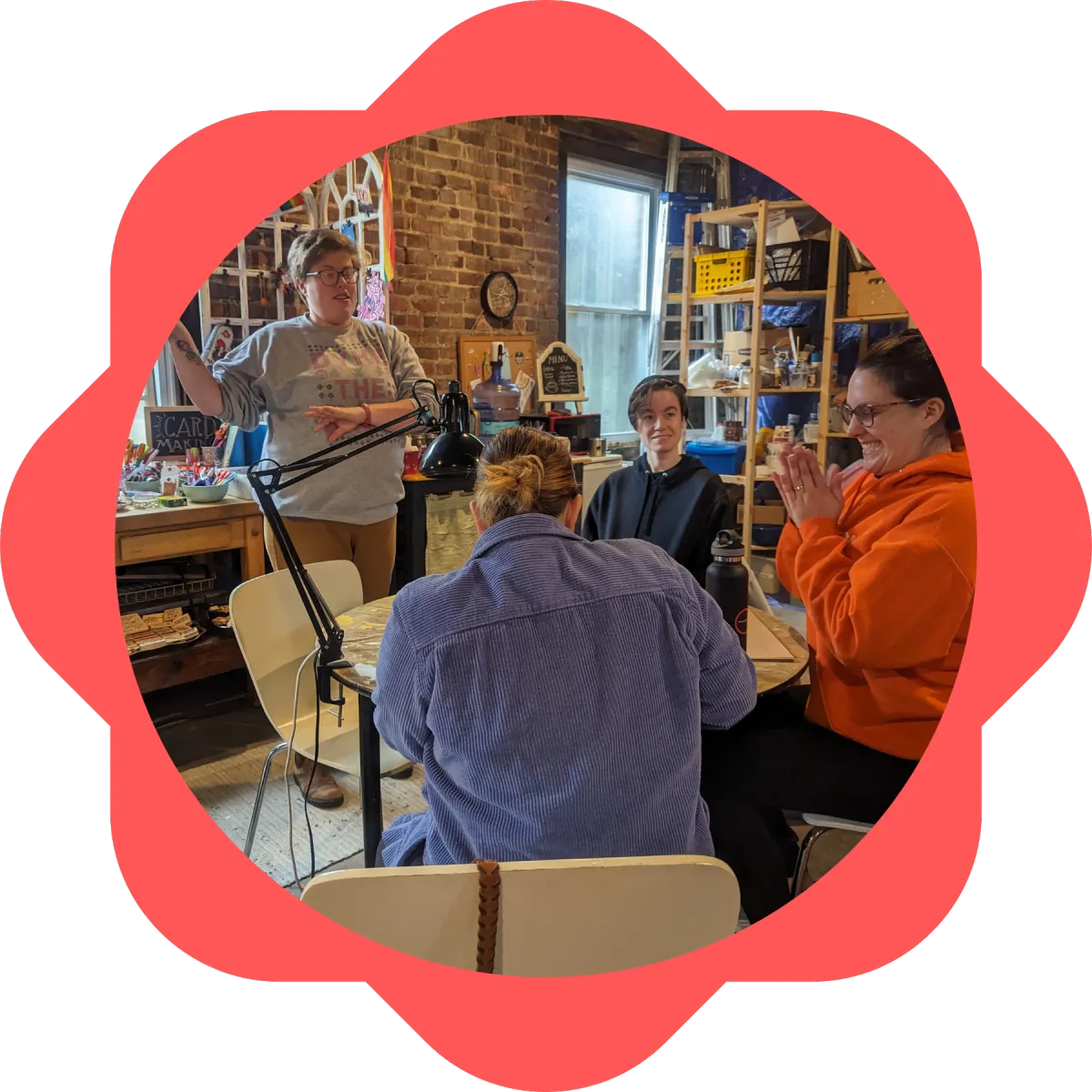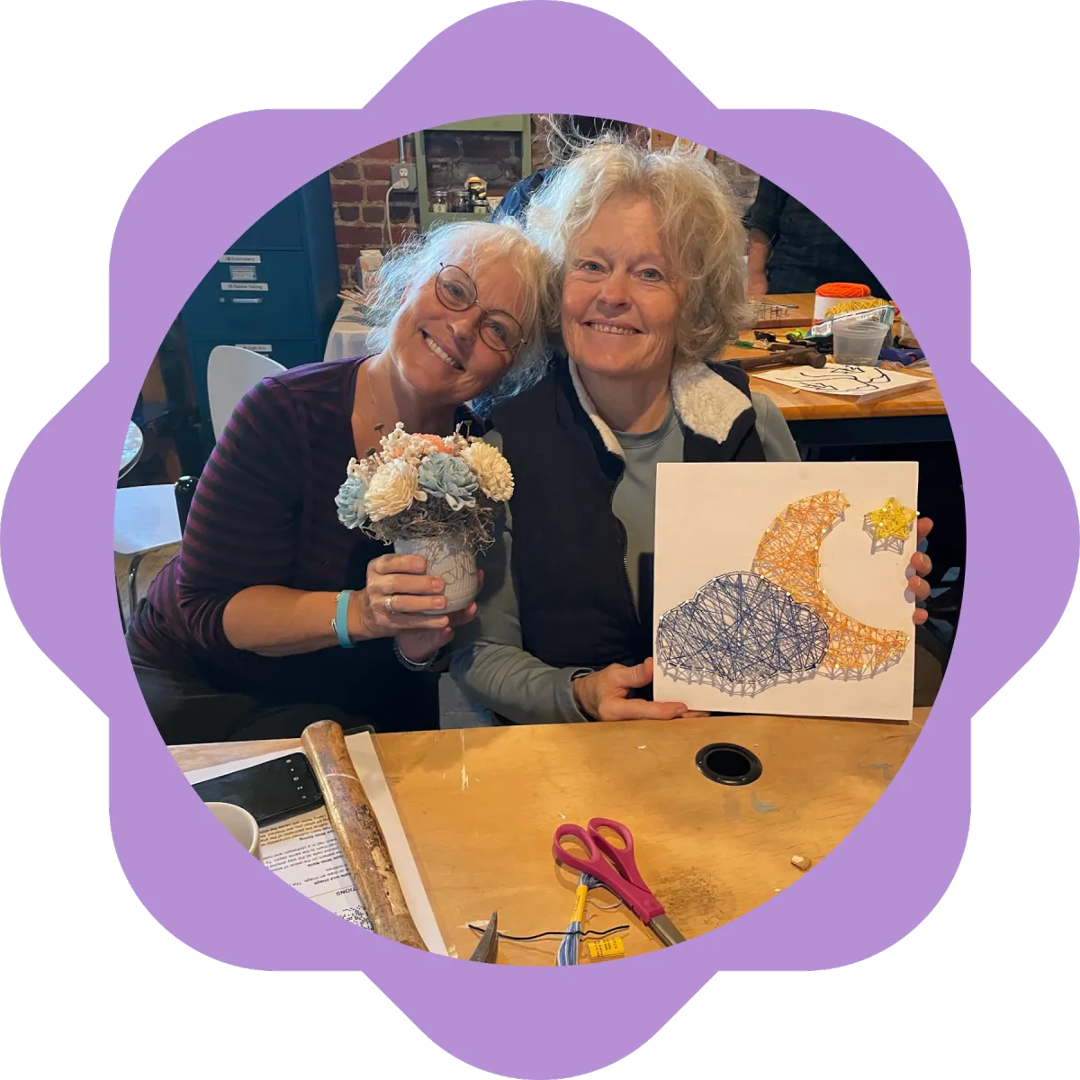 A safe space for people to spark their creativity and have shared creative experiences. We want you to relax, be creative, make new friends, and develop hands-on skills. We take care of all the planning, tools, materials, and clean up.
